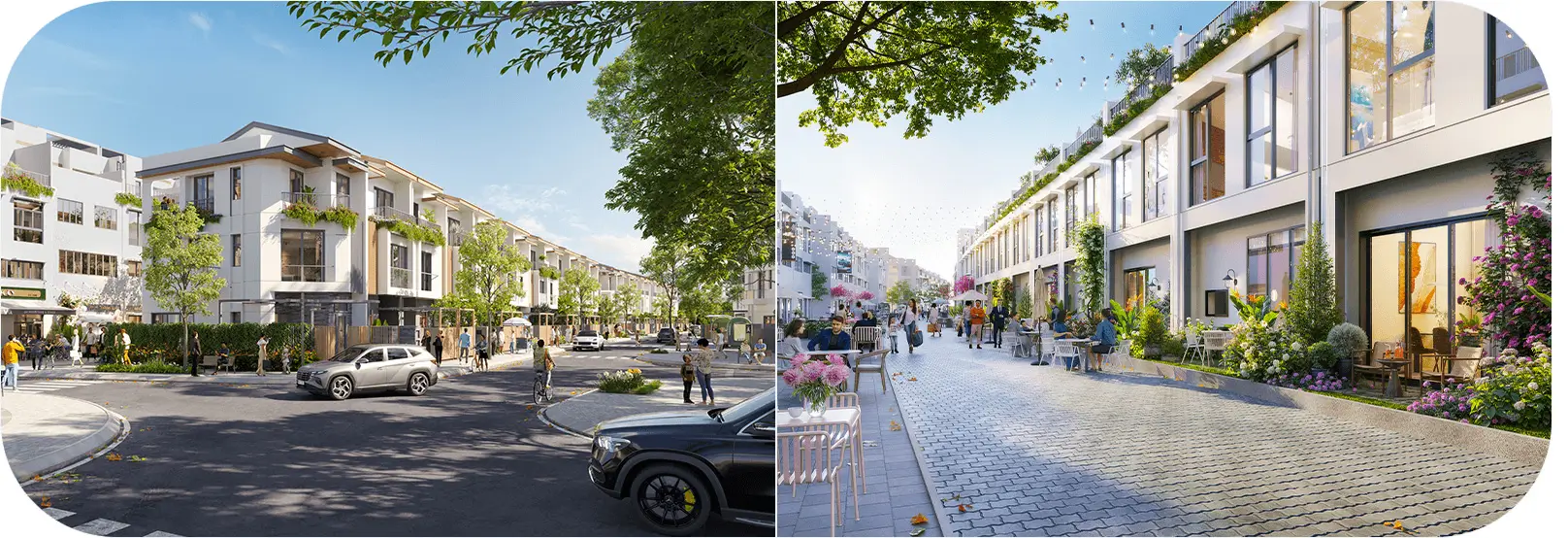 Song song đó, trục kinh doanh – dịch vụ được hình thành từ trung tâm thương mại 3 ha, tuyến phố thương mại xuyên tâm, mang đến nhịp sống sôi động và tiềm năng kinh doanh nội khu. Các tiện ích thể thao như: trung tâm thể dục thể thao 1 ha, bao gồm hồ bơi điện phân muối, sân tennis và sân đa năng được thiết kế nhằm khuyến khích cư dân duy trì lối sống lành mạnh mỗi ngày. Giáo dục cũng được ưu tiên với trường học liên cấp chuẩn quốc tế, tạo nền tảng phát triển bền vững cho thế hệ tương lai.